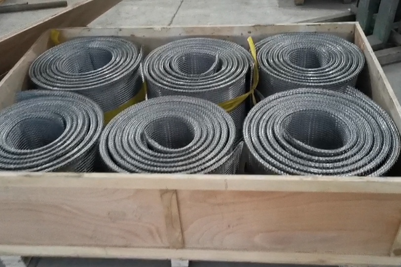 粉末冶金燒結(jié)網(wǎng)帶是多用于粉末冶金制品燒結(jié)爐,將同一方向的螺線交互編入,在交叉處把力骨線穿過去的型式。